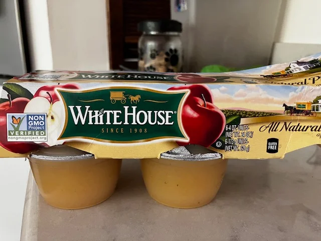 I buy this applesauce, they each get a few spoonfuls at night; then I finish it ~ sometimes I save the rest for the next few days and put it in a baggie in the fridge. At first I bought a big jar of it; but I like the small containers instead.